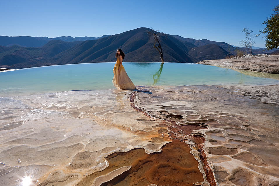Hierve el Agua is set of natural rock formations in the Mexican state of Oaxaca that look like waterfalls. The site is located about 70 km east of Oaxaca city, past Mitla, in the municipality of San Lorenzo Albarradas, with a narrow, winding unpaved road leading to the site. The site consists of two rock shelves or cliffs which rise between fifty and ninety metres from the valley below, from which extend nearly white rock formations which look like waterfalls.